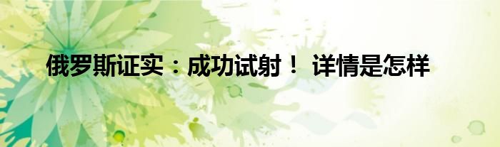 【俄罗斯证实:成功试射!】大家可以一起来了解一下这是什么情况!