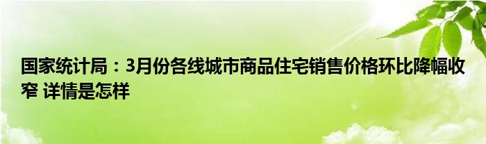 【国家统计局:3月份各线城市商品住宅销售价格环比降幅收窄】大家可以一起来了解一下这是什么情况!