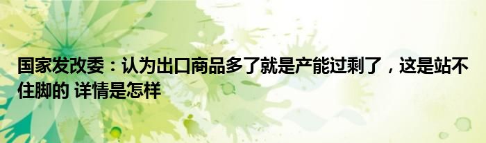 国家发改委:认为出口商品多了就是产能过剩了,这是站不住脚的 详情是怎样