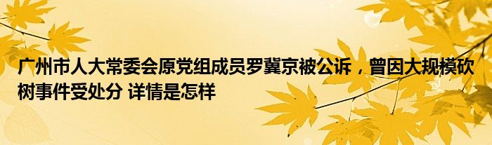 【广州市人大常委会原党组成员罗冀京被公诉,曾因大规模砍树事件受处分】大家可以一起来了解一下这是什么情况!