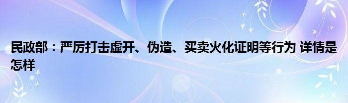 【民政部:严厉打击虚开、伪造、买卖火化证明等行为】大家可以一起来了解一下这是什么情况!