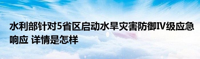 【水利部针对5省区启动水旱灾害防御Ⅳ级应急响应】大家可以一起来了解一下这是什么情况!