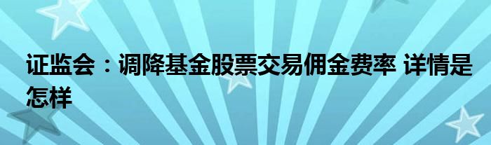 【证监会:调降基金股票交易佣金费率】大家可以一起来了解一下这是什么情况!