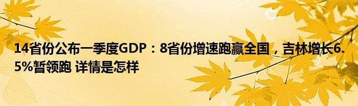 【14省份公布一季度GDP:8省份增速跑赢全国,吉林增长6.5%暂领跑】大家可以一起来了解一下这是什么情况!