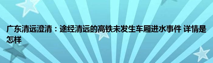 【广东清远澄清:途经清远的高铁未发生车厢进水事件】大家可以一起来了解一下这是什么情况!