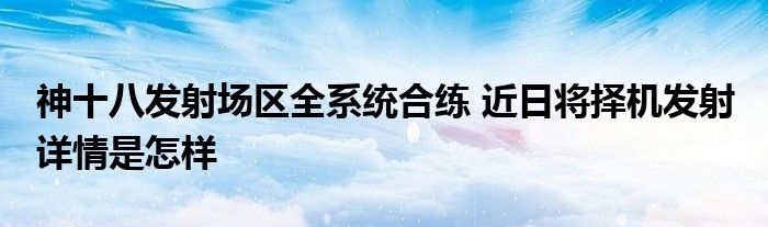 【神十八发射场区全系统合练 近日将择机发射】大家可以一起来了解一下这是什么情况!