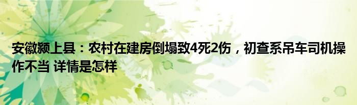 【安徽颍上县:农村在建房倒塌致4死2伤,初查系吊车司机操作不当】大家可以一起来了解一下这是什么情况!