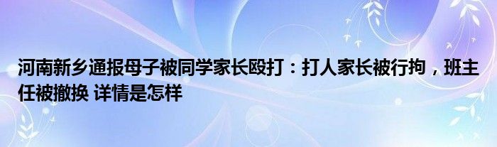 【河南新乡通报母子被同学家长殴打:打人家长被行拘,班主任被撤换】大家可以一起来了解一下这是什么情况!