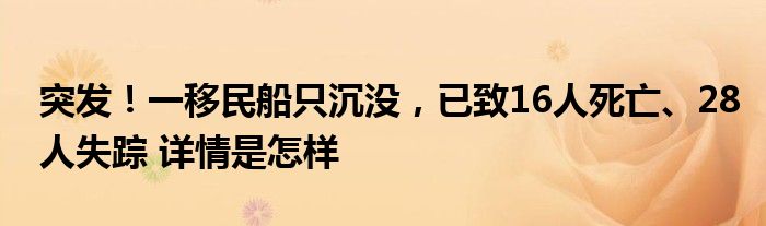 【突发!一移民船只沉没,已致16人死亡、28人失踪】大家可以一起来了解一下这是什么情况!