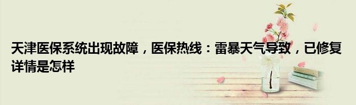 【天津医保系统出现故障,医保热线:雷暴天气导致,已修复】大家可以一起来了解一下这是什么情况!