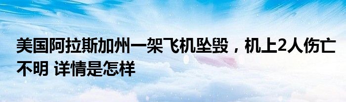 【美国阿拉斯加州一架飞机坠毁,机上2人伤亡不明】大家可以一起来了解一下这是什么情况!