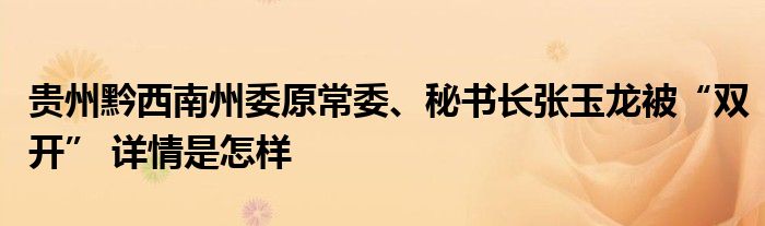 【贵州黔西南州委原常委、秘书长张玉龙被“双开”】大家可以一起来了解一下这是什么情况!