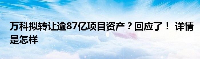 【万科拟转让逾87亿项目资产?回应了!】大家可以一起来了解一下这是什么情况!