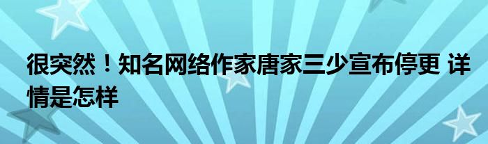 【很突然!知名网络作家唐家三少宣布停更】大家可以一起来了解一下这是什么情况!