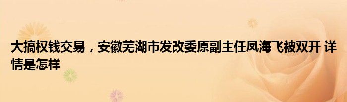 【大搞权钱交易,安徽芜湖市发改委原副主任凤海飞被双开】大家可以一起来了解一下这是什么情况!