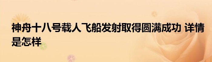 神舟十八号载人飞船发射取得圆满成功 详情是怎样
