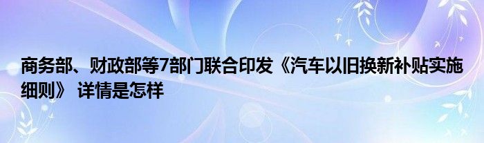 【商务部、财政部等7部门联合印发《汽车以旧换新补贴实施细则》】大家可以一起来了解一下这是什么情况!