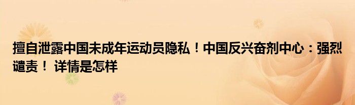 擅自泄露中国未成年运动员隐私!中国反兴奋剂中心:强烈谴责! 详情是怎样