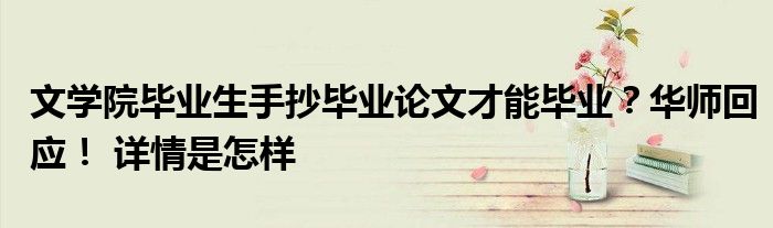 文学院毕业生手抄毕业论文才能毕业?华师回应! 详情是怎样
