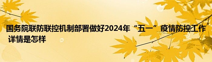 国务院联防联控机制部署做好2024年“五一”疫情防控工作 详情是怎样