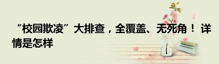 【“校园欺凌”大排查,全覆盖、无死角!】大家可以一起来了解一下这是什么情况!