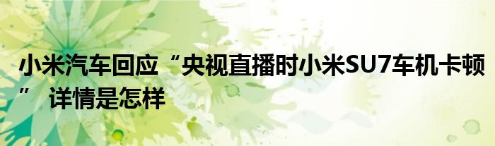 【小米汽车回应“央视直播时小米SU7车机卡顿”】大家可以一起来了解一下这是什么情况!