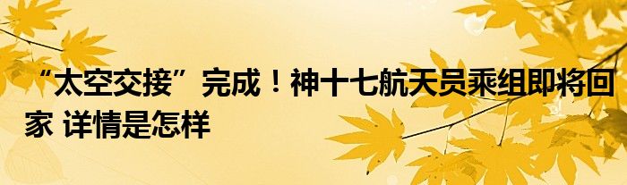 “太空交接”完成!神十七航天员乘组即将回家 详情是怎样