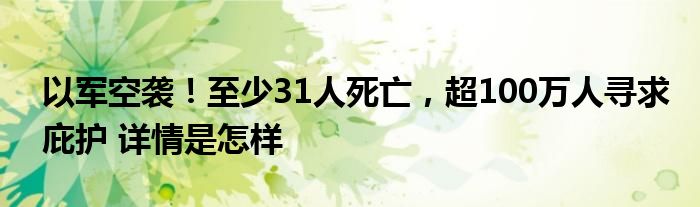 【以军空袭!至少31人死亡,超100万人寻求庇护】大家可以一起来了解一下这是什么情况!
