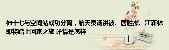 神十七与空间站成功分离,航天员汤洪波、唐胜杰、江新林即将踏上回家之旅 详情是怎样