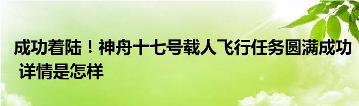 【成功着陆!神舟十七号载人飞行任务圆满成功】大家可以一起来了解一下这是什么情况!