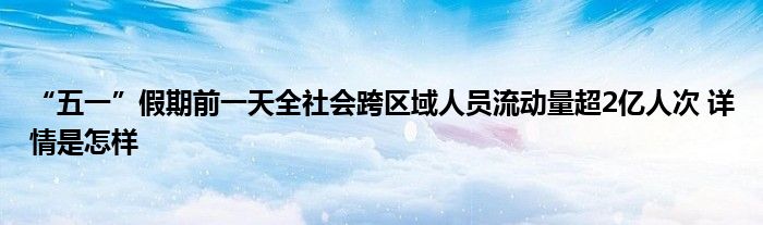 “五一”假期前一天全社会跨区域人员流动量超2亿人次 详情是怎样