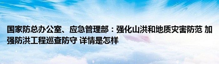 国家防总办公室、应急管理部:强化山洪和地质灾害防范 加强防洪工程巡查防守 详情是怎样