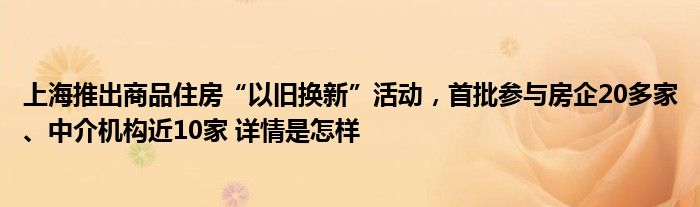 【上海推出商品住房“以旧换新”活动,首批参与房企20多家、中介机构近10家】大家可以一起来了解一下这是什么情况!