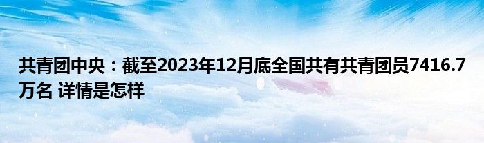 【共青团中央:截至2023年12月底全国共有共青团员7416.7万名】大家可以一起来了解一下这是什么情况!
