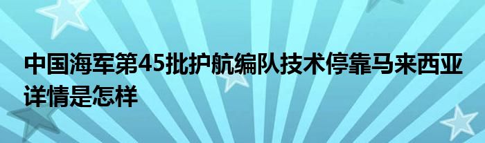 【中国海军第45批护航编队技术停靠马来西亚】大家可以一起来了解一下这是什么情况!