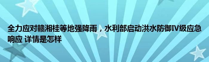 全力应对赣湘桂等地强降雨,水利部启动洪水防御Ⅳ级应急响应 详情是怎样