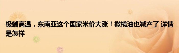 【极端高温,东南亚这个国家米价大涨!橄榄油也减产了】大家可以一起来了解一下这是什么情况!