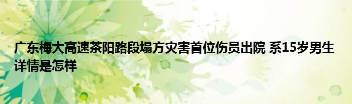 【广东梅大高速茶阳路段塌方灾害首位伤员出院 系15岁男生】大家可以一起来了解一下这是什么情况!