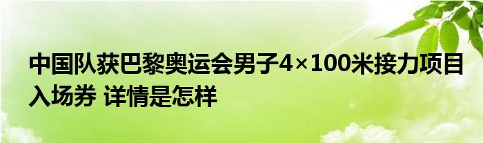 【中国队获巴黎奥运会男子4×100米接力项目入场券】大家可以一起来了解一下这是什么情况!