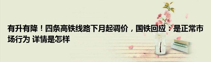 【有升有降!四条高铁线路下月起调价,国铁回应:是正常市场行为】大家可以一起来了解一下这是什么情况!