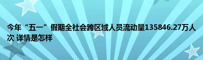 【今年“五一”假期全社会跨区域人员流动量135846.27万人次】大家可以一起来了解一下这是什么情况!