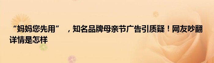 【“妈妈您先用” ,知名品牌母亲节广告引质疑!网友吵翻】大家可以一起来了解一下这是什么情况!