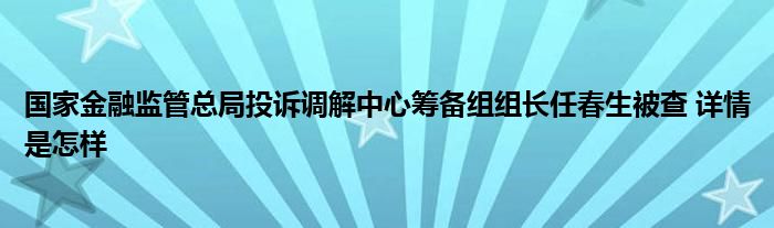 【国家金融监管总局投诉调解中心筹备组组长任春生被查】大家可以一起来了解一下这是什么情况!