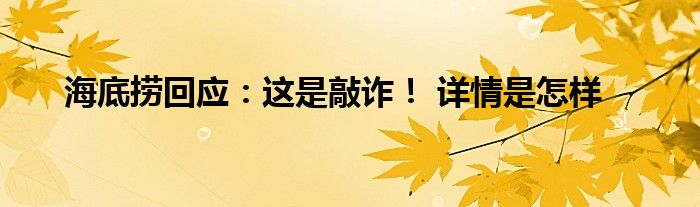 【海底捞回应:这是敲诈!】大家可以一起来了解一下这是什么情况!