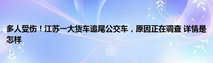 【多人受伤!江苏一大货车追尾公交车,原因正在调查】大家可以一起来了解一下这是什么情况!