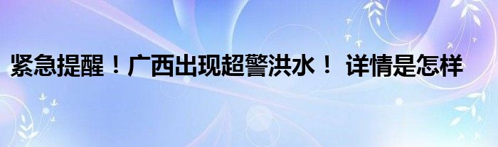 【紧急提醒!广西出现超警洪水!】大家可以一起来了解一下这是什么情况!