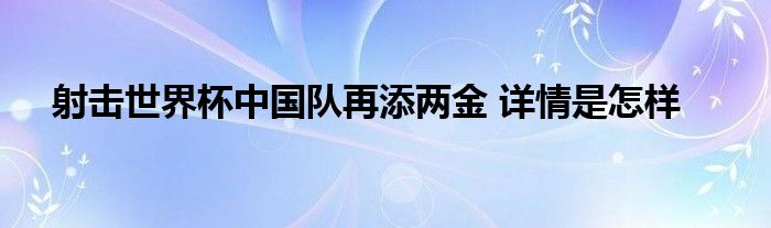 【射击世界杯中国队再添两金】大家可以一起来了解一下这是什么情况!