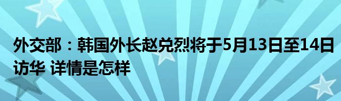 外交部:韩国外长赵兑烈将于5月13日至14日访华 详情是怎样