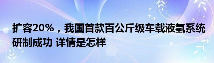 【扩容20%,我国首款百公斤级车载液氢系统研制成功】大家可以一起来了解一下这是什么情况!