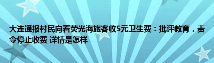 【大连通报村民向看荧光海旅客收5元卫生费:批评教育,责令停止收费】大家可以一起来了解一下这是什么情况!